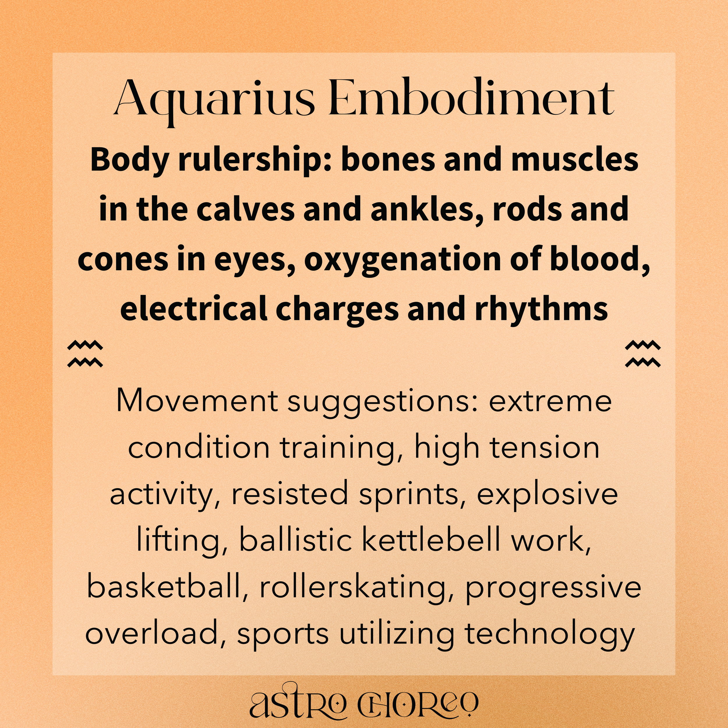 Body rulership: bones and muscles in the calves and ankles, rods and cones in eyes, oxygenation of blood, electrical charges and rhythms