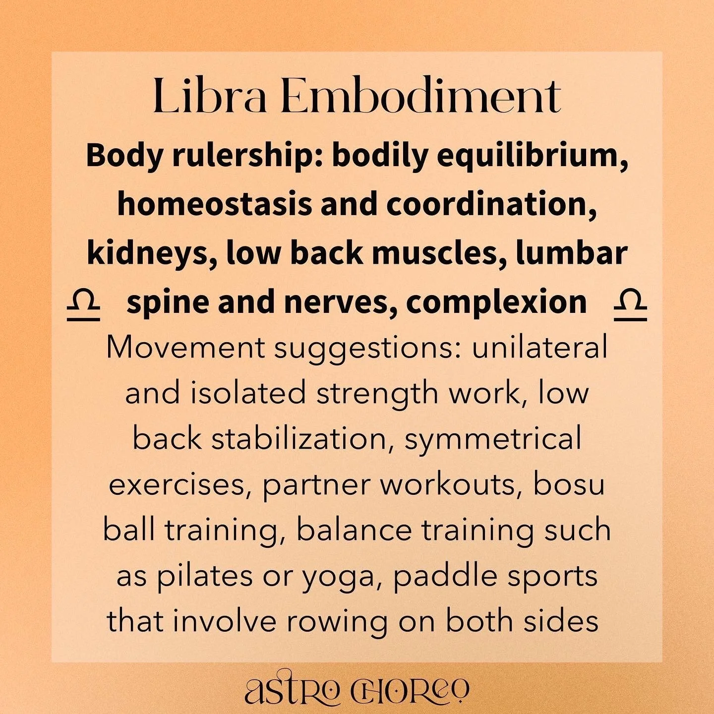 Body rulership: bodily equilibrium, homeostasis and coordination, kidneys, low back muscles, lumbar spine and nerves, complexion