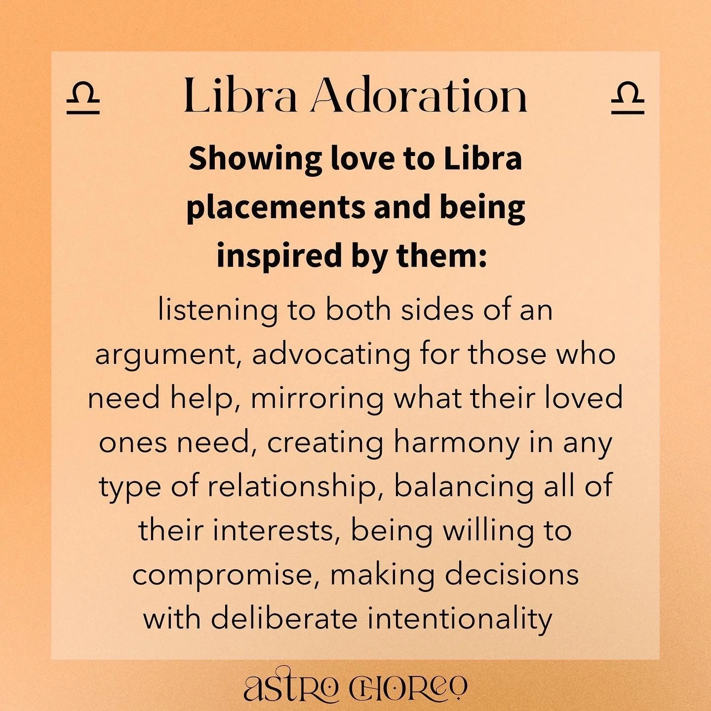 Showing love to Libra placements and being inspired by them: listening to both sides of an argument, advocating for those who need help, mirroring what their loved ones need, creating harmony in any type of relationship, balancing all of their interests, being willing to compromise, making decisions with deliberate intentionality