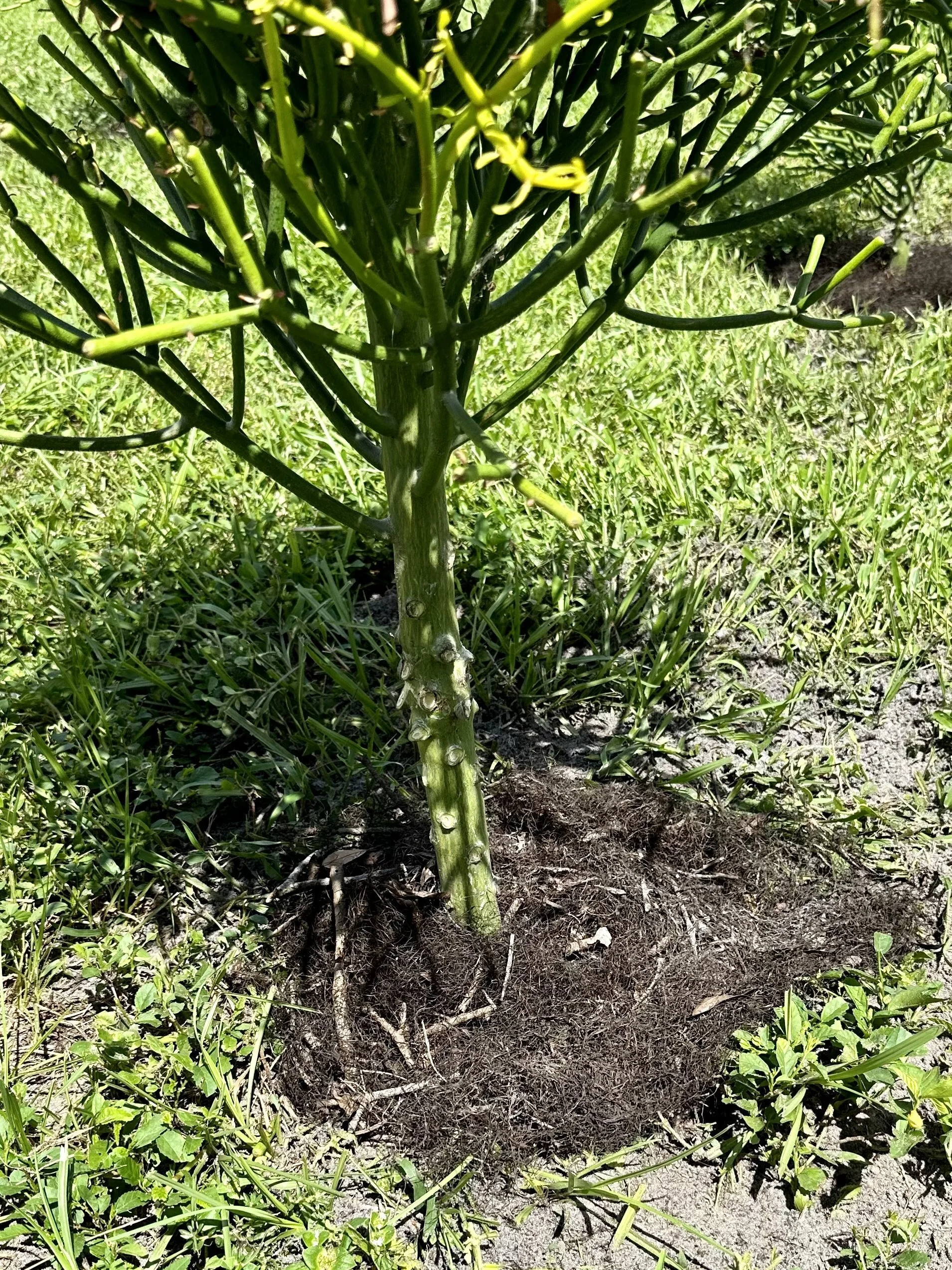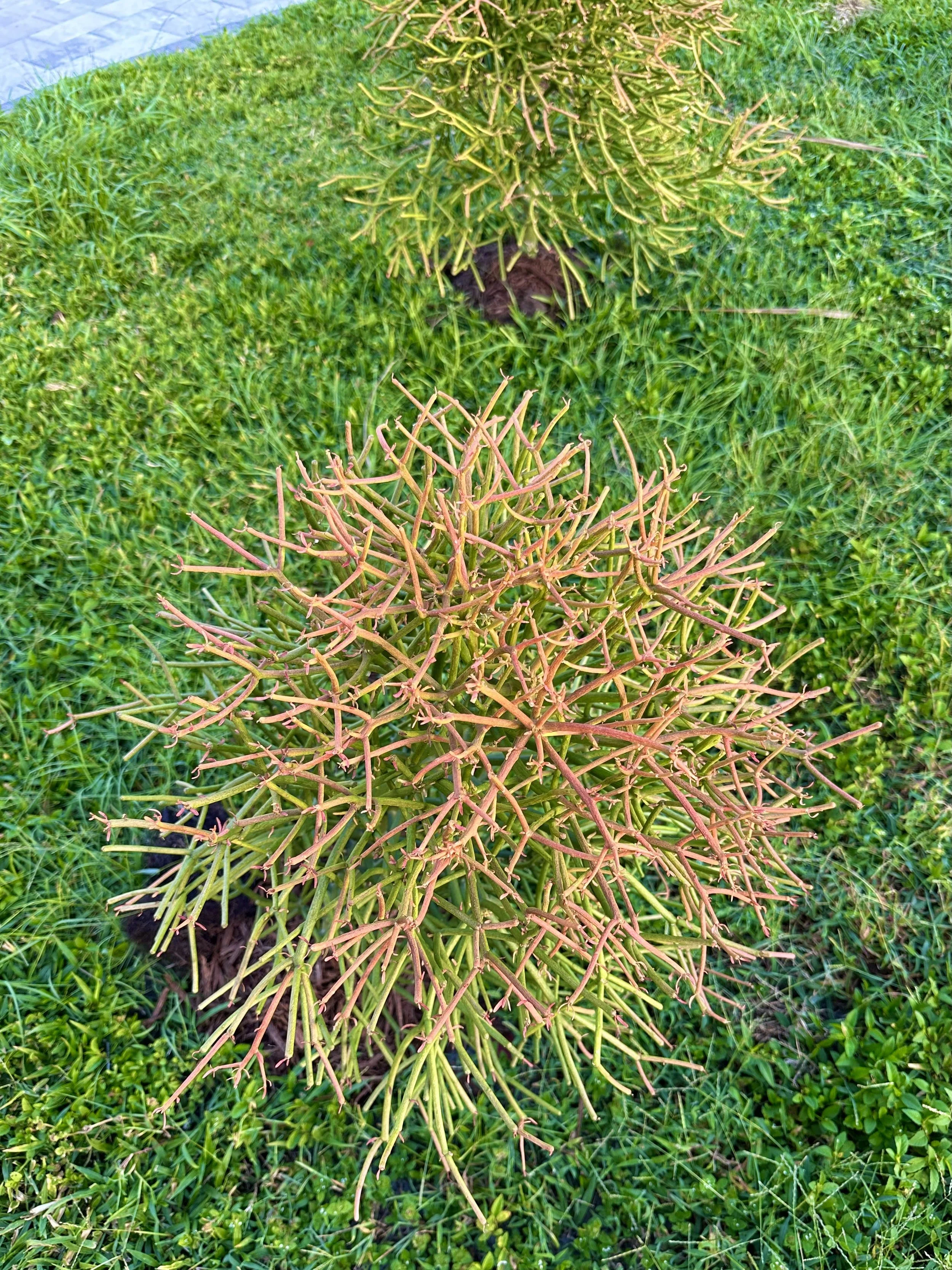 One of the fire sticks about two weeks after transplanting them and after they made it through a major hurricane with fiery red tops