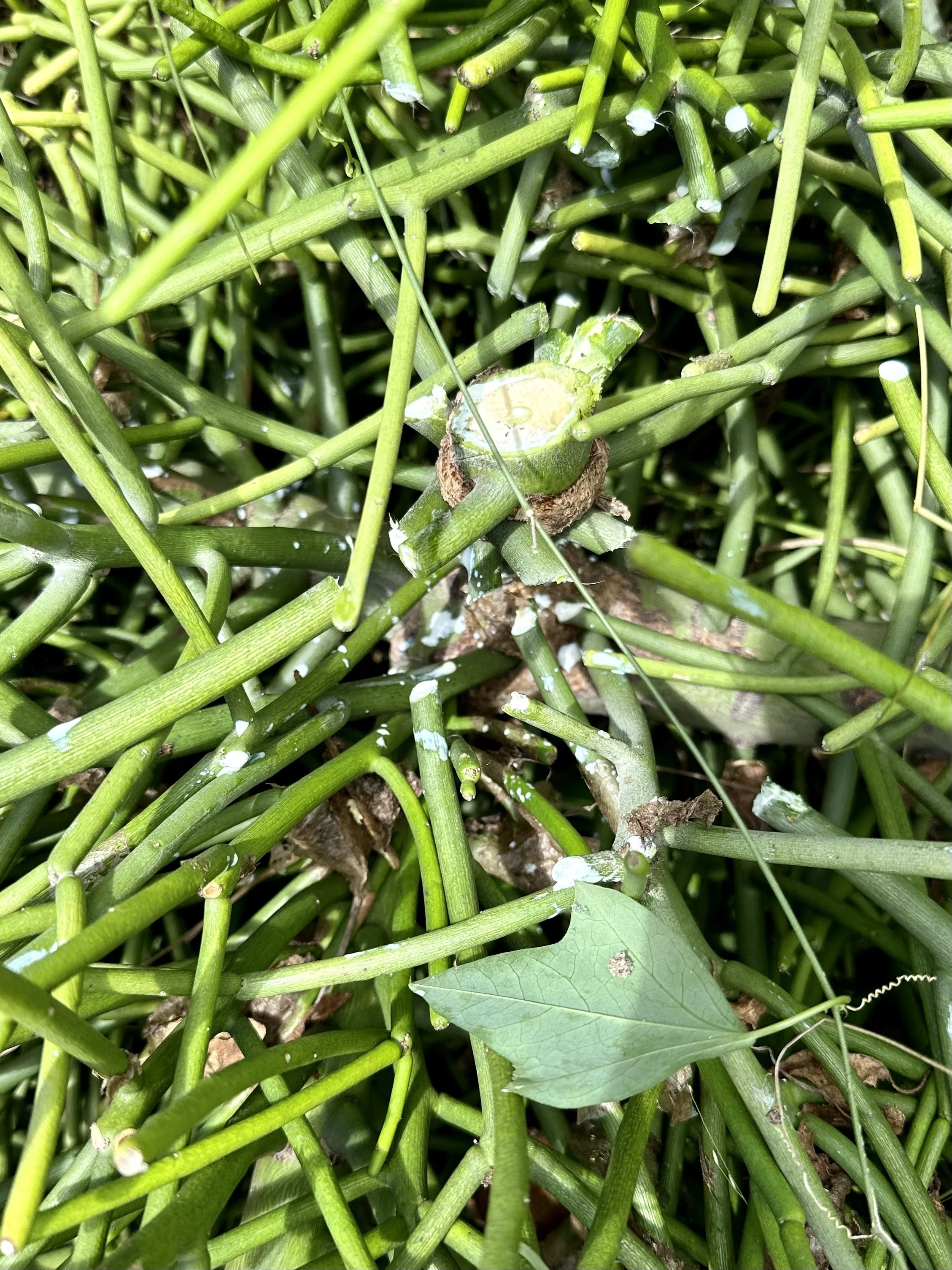 One of the fire sticks on the day that I transplanted them with light green tops, some yellow and orange starting to form